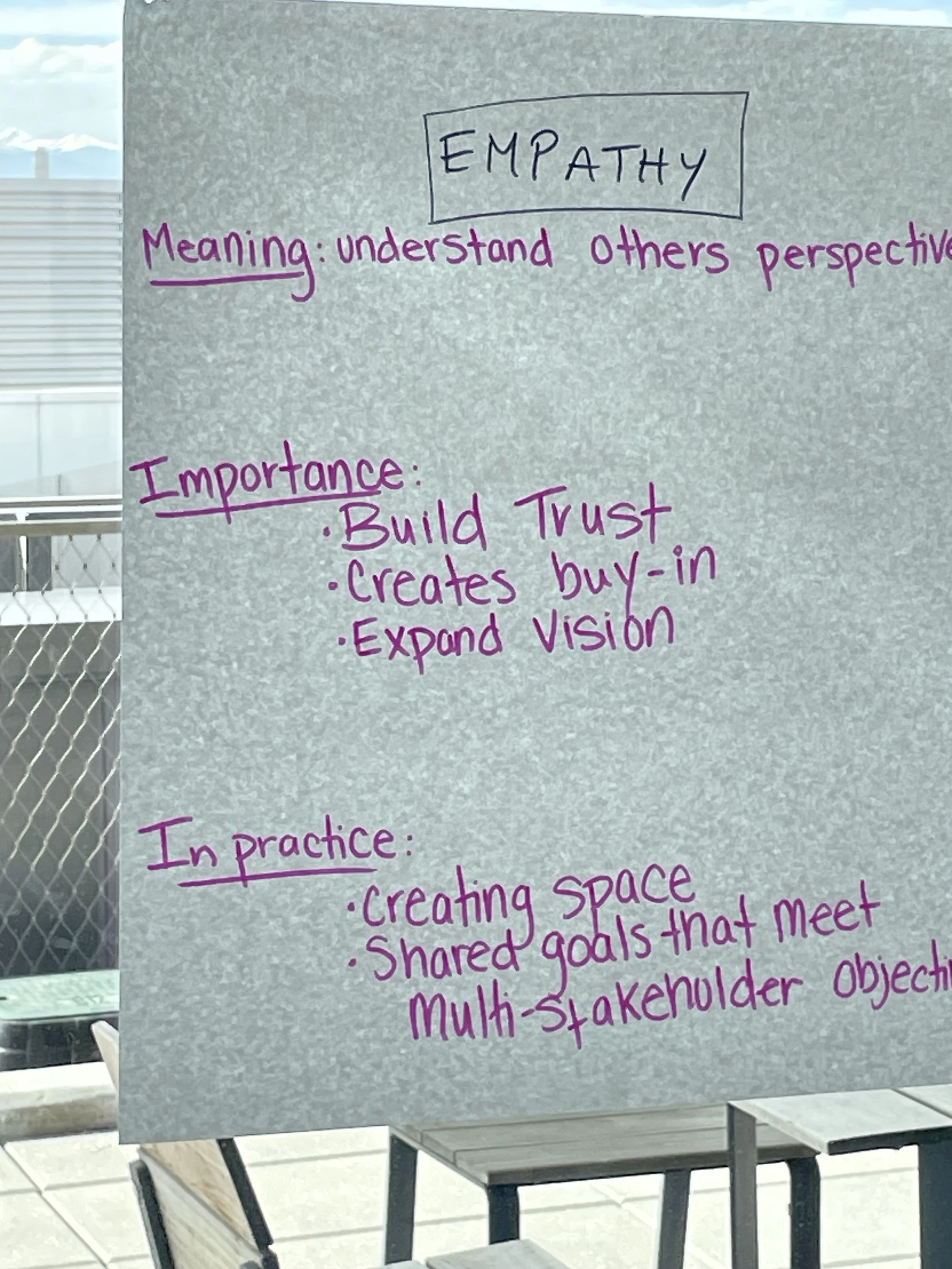Sanderson says that we all come from different places with different life experiences and values, and we’re often not even conscious of how those value systems play out. Building solutions requires building relationships, which requires connecting as a human being.
